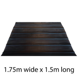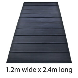 Our tailgate mats for trucks and floats are specially designed to maximise the horse’s comfort, and to reduce stress. Our mats have horizontal, specially moulded chunky slots that run across the width of the mats, with a fine ribbed design between the slots. Our tailgate mats are reinforced with fabric, which serves to strengthen our mats and increase adhesion to the float floor. Our tailgate mats have high traction and are extremely durable, which, combined with our anti slip surface, helps to reduce stress on the horse, prevent injury and increases blood flow to the horse during transportation. It also allows for greater stability and confidence upon entering the float.